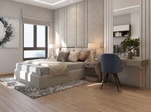 Thiết kế chung cư mini phong cách tân cổ điển tạo ra một sự hài hòa, độc đáo cho không gian. Phong cách này thường sử dụng các gam màu trung tính hoặc ấm áp, chất liệu gỗ công nghiệp hoặc tự nhiên. Các đồ nội thất được chọn lựa có hình dạng uốn lượn mềm mại nhưng không quá nhiều hoa văn và chi tiết trang trí. Phong cách thiết kế căn hộ mini giúp tạo ra một không gian thanh lịch, cá tính và phong phú.